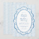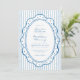 This whimsical invitation features a soft blue playful scalloped oval dotted frame against a classic blue and white striped background. Perfect for a wedding with a preppy or coastal aesthetic, this charming design provides a sweet, hand-painted look for your special celebration. Created by Simply Farmhouse Press.