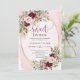 You want to be unique? This Watercolor Burgundy and Blush Floral Sweet Sixteen Invitation is designed to make your special day unforgettable. Featuring rich burgundy and blush roses, delicate florals, and shimmering gold leaves woven into a romantic oval frame, this design combines timeless elegance with a modern boho touch. Perfect for a classy Sweet 16 celebration, it suits themes from rustic chic to luxury glam. The sophisticated colour palette of burgundy, blush, and gold brings warmth and charm to your event, whether held in fall or spring. Personalise easily with your name, date, and venue to create an invitation that reflects your unique style and makes a lasting impression.