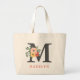 Whimsical Blush Coral Floral Personalised Monogram Large Tote Bag