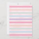 A modern, girly and whimsical first birthday invitation designed with a cute unicorn horn, blush pink floral and curly smiling eyelashes and a chic calligraphy lettering of the birthday girl's name with a sprinkle of delicate rose gold glitter on the top centre. The back of the invite features a pastel coloured rainbow stripes.