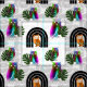 Embrace a blend of mystical charm and tropical vibes with this unique surface pattern. Featuring a rhythmic arrangement of wise owls nestled in boho-style arches alongside iridescent owls and lush Monstera leaves, this design is perfect for those who love eclectic and modern nature-inspired aesthetics.