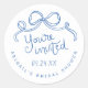 Whimsical Hand Drawn Bow Custom Bridal Shower Envelope Seals. Shown in blue and white, but all colours are editable by you. "You're invited" in a quirky and fun script. Personalise the template with your event date and title. © Kimbellished, LLC