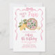 Whimsical Bow Pizza Girl Birthday Party Invitation, slice of fun pink pizza party invitation,