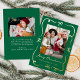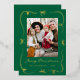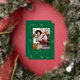 Celebrate the season with this elegant Christmas card featuring gold foil bows and ribbon flourishes on a rich green background. The greeting sparkles in festive foil script, with your family name and year highlighted below. On the back, you’ll find room for another photo and a custom holiday message, creating a perfect blend of traditional charm and luxury for your Christmas mail.