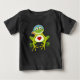 This infant t-shirt is sure to be a hit with baby! It features our cute green frog with big eyes wearing a blue baseball cap - backwards. He also has a huge red heart on his belly. The print is only on the front.