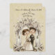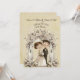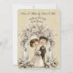 For the less formal ourdoor garden wedding this is a cute image of a whimsical bride and groom standing at a floral arch on a tan background.