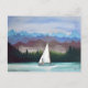Whimsical Bunny Boat Mountains Woodland Artwork Postcard