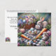 Whimsical Bunny Easter Picnic Pink Purple Flowers Holiday Card