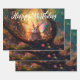 Whimsical bunny enchanted forest Happy Birthday Wrapping Paper Sheet