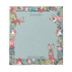 Perfect for anyone who loves bunny rabbits and whimsy, this notepad can be personalised with a name for a custom look! Brown woodland bunnies wearing a scarf or Santa hat are scurrying among snowy leaves, ferns and flowers on a dark teal background. There are also berries and mushrooms for each rabbit to enjoy! Greens, pinks and teal set off the tan animals. Reads, "From the desk of" at the top of the snow-dusted light teal note area. Original artwork by Tuzi Williams.