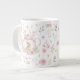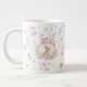 Whimsical Bunny Teapot Floral Spring Giant Coffee Mug. This design features a delightful whimsical bunny nestled within a pink teapot, surrounded by spring blossoms and green foliage. This floral pattern brings a touch of spring magic to your everyday sips. Perfect for tea, coffee, or hot cocoa, it makes a delightful gift for Easter, Mother's Day, birthdays, or any occasion for a bunny lover.
