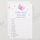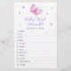 This baby shower game is a baby word scramble with 12 words to unscramble. It features a watercolor butterfly design. Personalise the text on the back with a name. Matching products available.