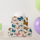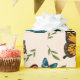 Cute and whimsical butterfly pattern wrapping paper with green leaves. The background color is editable. Perfect for gift wrapping for a girl's birthday and other celebrations.