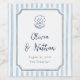 Whimsical Calligraphy Retro Blue Stripes Wedding Wine Label