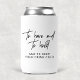 These whimsical calligraphy wedding favour can coolers are perfect for a modern wedding. The design features elegant yet rustic typography for a simple minimal look. Personalise the can coolers with your names and wedding date.