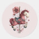 Stickers with a cute retro style carousel horse. Drawn in Pretty pink colors with fancy flowers.