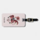 A luggage tag with a cute retro style carousel horse. Drawn in Pretty pink colors with fancy flowers.