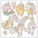 A whimsical combination of unicorns, stars and rainbows in fun pastel colours of pink, purple, green, blue, yellow and light brown. You'll want to stick them on just about everything! Great for kids or older teens and adults with a child-like imagination.