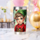 A sweet Christmas tumbler with a cute elf cartoon and a festive background.