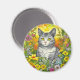 Pretty colourful whimsical cat and flowers yellow floral art. Ai cat and flowers.