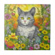 Whimsical Cat and Flowers Tile