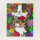 Whimsical Cat and Kitten Folk Art Colourful Jigsaw Puzzle
