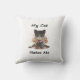 This throw pillow showcases a darkly funny illustration of an angry cat, playing on the classic stereotype that cats are aloof, cold, or even openly hostile towards their owners. It captures the humour of cats as tiny tyrants who rule the house and tolerate humans only on their own terms.