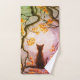 Whimsical Cat in Tree Full Moon Painting Art Hand Towel
