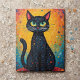 This captivating jigsaw puzzle features a charming black cat with mesmerizing green eyes that seem to gleam with curiosity and playfulness. Its pink nose and delicate whiskers add a delightful touch, while the intricate patterns on its fur create an artistic appeal. The backdrop bursts with energy and vibrancy, showcasing an enchanting mix of warm yellows and oranges alongside soothing blues. Whimsical flowers and stars infuse the design with a magical, dreamlike quality. Perfect for cat lovers and art enthusiasts, this puzzle offers an enjoyable challenge to bring individuals or families together. The completed puzzle doubles as a striking decorative piece, ideal for framing and displaying to fill any space with color, charm, and personality.