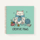 Unleash your inner artist with this whimsical sketchbook showcasing a fluffy white kitten happily knitting a blue scarf. The playful scene, complete with knitting needles, yarn, and a paint palette, captures the joy of creative pursuits. The soothing mint green cover is ideal for both artistic endeavors and everyday journaling. Let this delightful feline inspire your next masterpiece or simply serve as a cute reminder to embrace your passions. It's the perfect blend of art, craft, and feline charm.