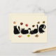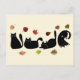 Whimsical Cat Line Art with Autumn Leaves Postcard