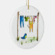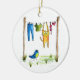 Whimsical Cat on a Clothesline Ceramic Tree Decoration