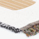 A quality printed throw has its advantages. This is a much finer weave throw than its loopier cousins, and though lighter, it is worth the investment for custom room accessorizing. The back is much prettier than the typical brown, and the fringe on the long sides very vivid, the selvage nicely done. Before photographing, I washed the throw in cold water, delicate, with a thicker woven throw the same size. On tumble dry low, this throw was dry in half the time as the other. This is a very practical quality if you use throws for furniture covers or to wrap up in frequently. The sleekness of the fabric makes it a great layer for accenting or protecting without the feeling of sitting on too much stuff. Perfect for napping or when you feel a light chill coming on. The color printing is beautiful and on this fabric, matched the design and color of my Photoshop image. This is an advantage for blending room fabrics and colors. The fringe on the short sides prints the colors from the design image and therefore varies from the side fringe. I streaked a white fractal line through the plaid pattern to give the illusion of weaving. This printed as crisp as an illusory thread, and put some white in the short side fringe, showing another advantage of print vs loomed- for artistic purposes, line lines, detail, and color integrity can be planned and preserved. My loomed throws have color limitations and more of a needlepoint texture. Print throws reproduce an exact image. The throw felt a little stiff straight out of the package, but this went away in the first delicate wash. Of course I searched the wash water for ink or bleeding and there was none.