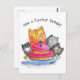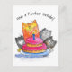 This is an original mixed media painting of six whimsical cats with a birthday cake.
