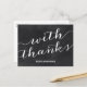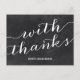 This casual-chic thank you postcard features the text "With thanks" in a whimsical script font against a chalkboard-style background.