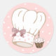 Whimsical stickers done in a pink with white polka dots, and a cartoon chef's hat, with a cupcake. Cute for your home baked gifts.