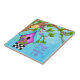 Protect your table or countertop when you use this delightful Whimsical Chequerboard Birdhouse. Whimsical Chequerboard Birdhouse is a charming and colourful illustration created by Debi Payne Designs. This illustration features a whimsical birdhouse of purple and teal accented with multiple doodle flowers sitting above a black and white chequerboard border base. The birdhouse is hanging in a tree with multiple green leaves by a delicate bow tie purple ribbon. Perched on a tree limb and flying in the air are two little Tweedie birds. Accenting the illustration is the hand-lettering positive saying that reads, “Friends are the sunshine of life.” The illustration and text are all over a sky-blue watercolor wash background.