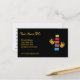 This whimsical chiropractic business card features yellow text and colourful vertebrae with heart-decorated hand on each side, all on a black background. The reverse side of the card features appointment set up - for multiple appointments.