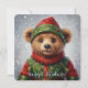 Whimsical Christmas Elf Teddy Bear Painterly Style Holiday Card