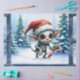 Whimsical Christmas Elf with Candy Cane. Bring holiday magic to life with this unique Christmas artwork: a whimsical, grey-skinned elf wearing a classic red and white Santa hat. With big, expressive eyes, he holds a striped candy cane staff against a snowy winter landscape filled with evergreen trees. This festive and magical design captures the joyful spirit of Christmas.