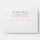 Add a festive touch to your holiday correspondence with these beautifully designed custom envelopes! The return address features elegant red and green typography, personalised with your family name and holiday-themed address. The front showcases a hand-drawn bow frame in green, perfectly complementing the "kindly deliver to" message in festive red script, evoking the warmth and joy of the holiday season. These envelopes are ideal for sending Christmas cards, holiday invitations, or special seasonal greetings, ensuring your mail stands out with a touch of class and holiday cheer. Personalise yours today for a stylish, custom holiday experience!