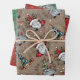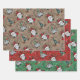 Christmas holiday wrapping paper sheets feature cute Christmas gnomes on brown, red and green backgrounds, fun for your holiday gift giving.