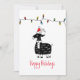 Whimsical black goat illustration with red Santa hat, a string of holiday lights and customisable "Happy Holidays" text