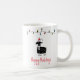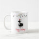 Whimsical black goat illustration with red Santa hat, a string of holiday lights and customisable "Happy Holidays" text