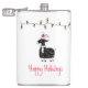 Whimsical black goat illustration with red Santa hat, a string of holiday lights and customisable "Happy Holidays" text