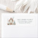 Add a touch of whimsical winter magic to your holiday card envelopes with this modern cute Christmas cottage house watercolor address labels. Features a charming watercolor scene of a cosy house, snowman and pine trees all in soft neutral terracotta and dusty soft teal, Perfect for adding a personal and minimal cuteness to your holiday stationery, personalise it to make it your own!