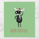 Whimsical modern hand illustrated standing moose with santa hat, scarf, and customisable Merry Christmas text on green background