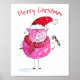 This is an original mixed media painting of a whimsical pig dressed for Christmas.