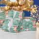 Whimsical Christmas wrapping paper has a snowflake patterned background in green and is covered with jolly snowmen and the cutest reindeer!