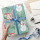 Whimsical Christmas Snowmen and Reindeer - Green Wrapping Paper